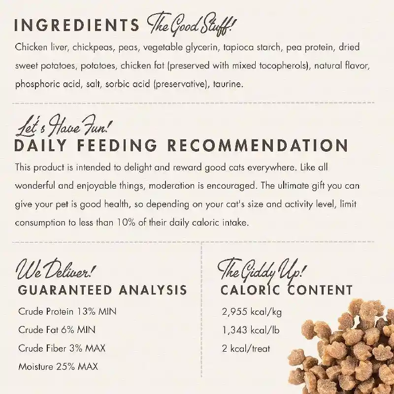 SOFT CAT TREATS - These liver recipe cat treats are moist, tender, and delicious. This 3 oz bag contains bite-sized treats that allow you to give your cat a small treat without worrying about overfeeding.