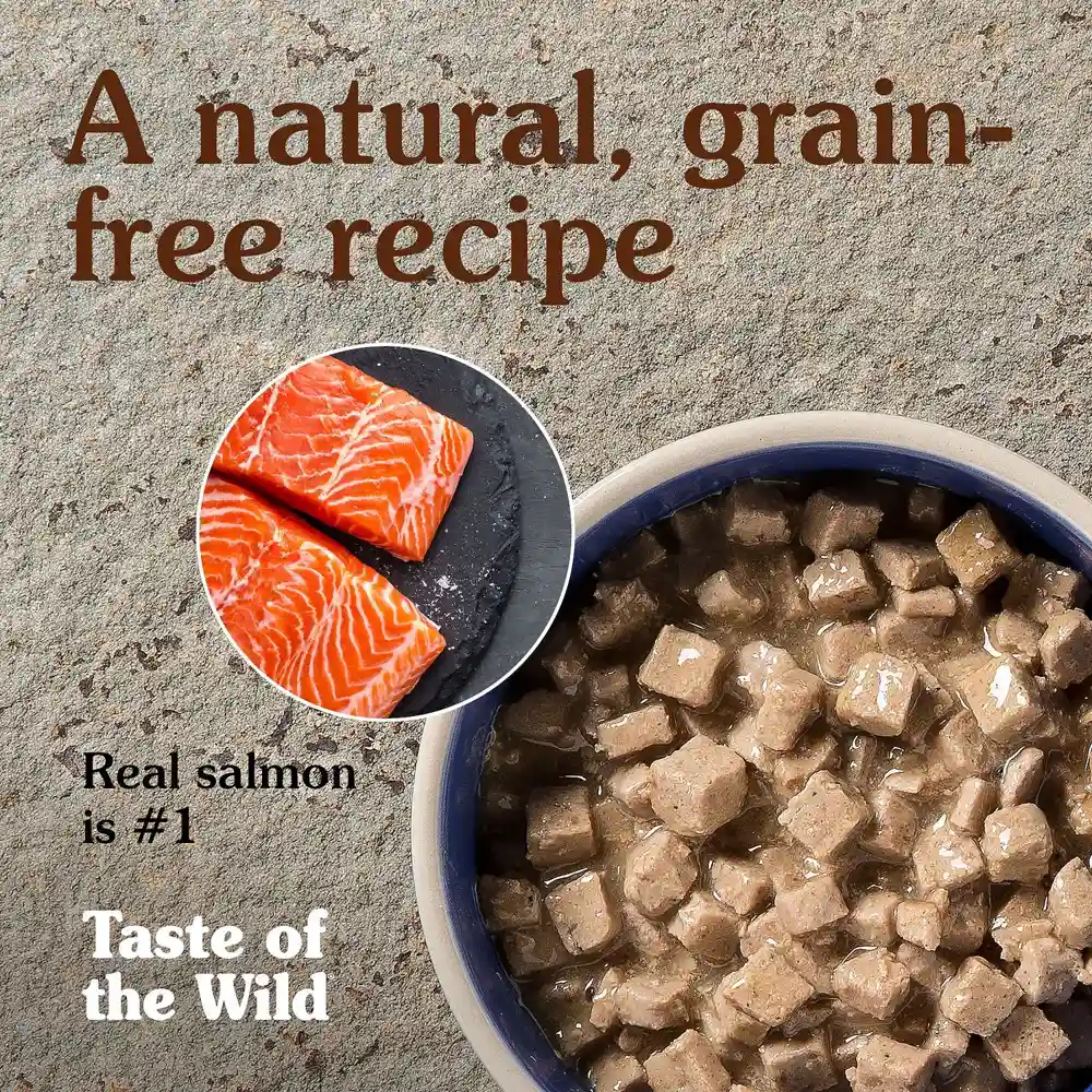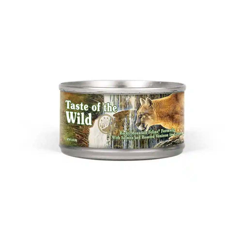Feed your furry friend's wild side with Taste of the Wild Rocky Mountain Grain-Free Canned Cat Food. Featuring real salmon as the very first ingredient along with chicken liver, chicken, roasted venison and ocean fish, this delicious and nutritious, grain-free food includes real peas and pea flour that deliver the highly-digestible energy your active cat needs to thrive. Tomatoes, blueberries and raspberries offer natural antioxidant support for overall health and immunity, while added taurine provides vital support for strong eyesight and healthy heart function. Give your cat companion the taste of the wild she constantly craves!