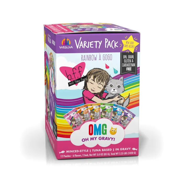 - Includes a variety of B.F.F. OMG GRAVY pouches for your tuna lover!