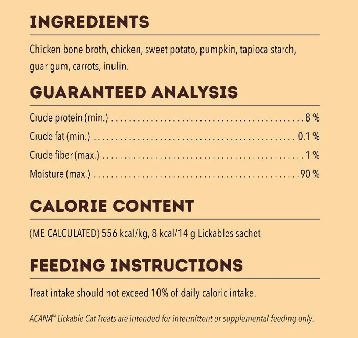 Acana Cat Lickables Chicken 5ct Treat 2.5oz 10/cs 6cs=mc