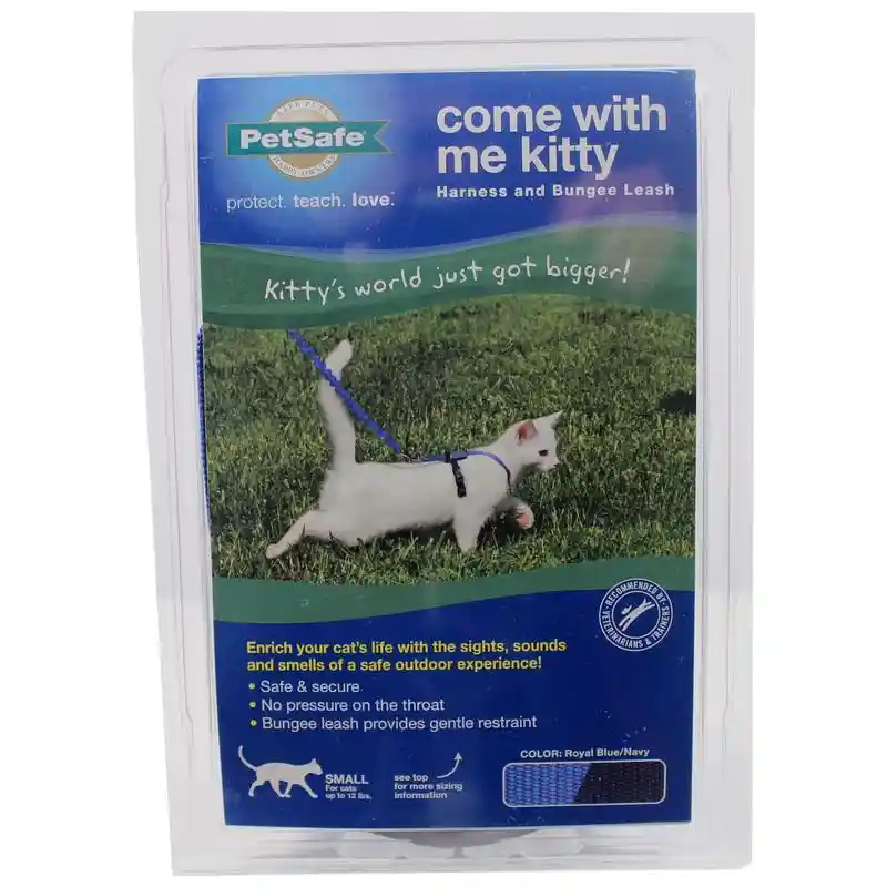 The Come With Me Kitty™ Harness and Bungee Leash can help you enrich your cat’s life with the sights, sounds, and smells of a safe outdoor experience. It gives you gentle, comfortable control of your cat or kitten. Now you can share enjoyable walks, exercise, and playtime outside your home. The bungee leash was specially designed to gently and securely control your cat. When your cat moves forward, the leash flexes with your cat’s movement and tightens across the harness shoulder straps. This removes pressure from the delicate throat area, preventing your cat from choking or escaping.