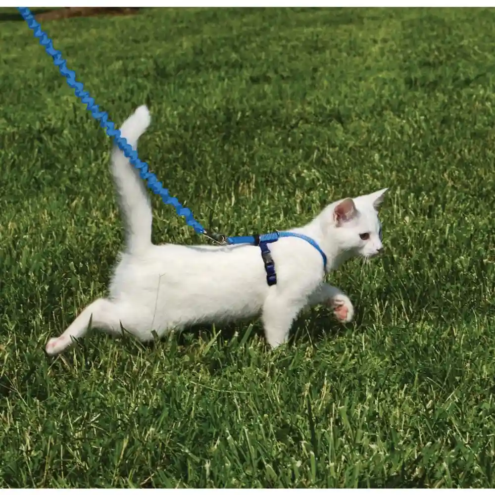 - Unique bungee leash design provides “give” when your cat approaches the end of the leash