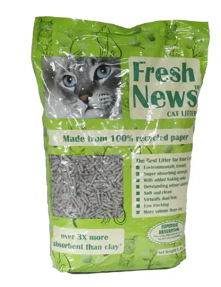 Keep your home clean and help the environment with Fresh News Cat Litter & Multi-Cat Litter! Fresh News Cat Litters are non-allergenic, 3x more absorbent than clan, and are biodegradable when composted. Fresh News Cat Litters are 99% Dust Free and are Low Tracking with moisture locking granules to help neutralize litter box odors which means you can keep your home smelling fresh!. Fresh News Original Cat Litter has fast absorbing pellets with baking soda built into it to help neutralize litter tray odors. Have more than one cat? Try out Fresh News Multi-Cat Litter which offers a softer, lighter, more absorbent crumbled texture to help keep your house smelling clean!. Fresh News Original Texture offers a softer pellet that retains its form when wet reducing the amount of pellets tracked around your house. Fresh News Multi-Cat offers a softer texture that will limit the amount of litter outside of your litter box.