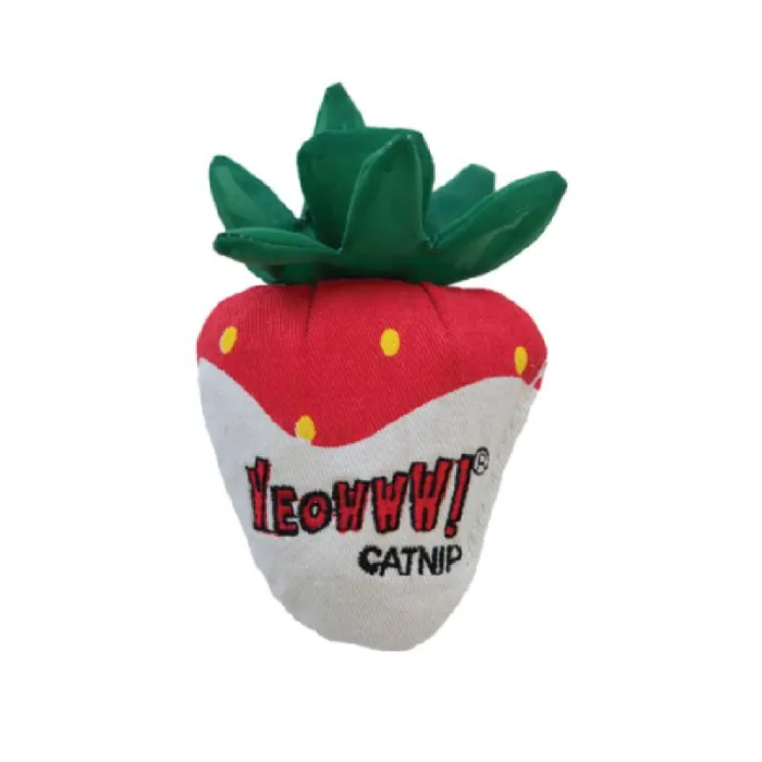 Looking for a more fruitful relationship with your cat? Just add Yeowww! Catnip Strawberries! Sold in a 3-pack or individually - plain or dipped in white or dark “chocolate” - our berry fun treats are just the thing to shake up kitty’s playtime. That’s because these plump mouthfuls are loaded with our own version of vitamin C - catnip! It’s the same organically-grown catnip we use in all of our products that has made Yeowww! famous and has cats asking for it by name. For added interest, the leaves and stems feature a fun crinkle texture!