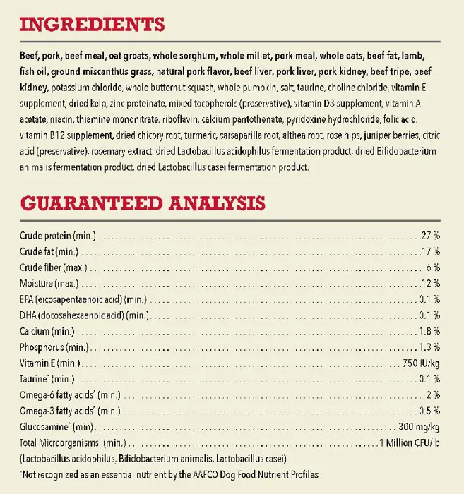 Our ACANA® food for dogs always goes beyond the 1st ingredient, thoughtfully crafted from start to finish. ACANA® Wholesome Grains Red Meat & Grains recipe is packed with our delicious ranch-raised beef, Yorkshire pork, and grass-fed lamb, and complemented with wholesome grains like oats, sorghum, and millet. These grains are high in fiber and gluten-free, offering added nutrition that helps support a healthy digestive environment. Our premium ingredients come from a curated group of farmers, ranchers and fishers we’ve known and trusted for decades, and we approach every batch with an unsurpassed commitment to safety and quality in our award-winning Kentucky kitchen. The result is a protein-rich, nutritious, and delicious dog food to help them live a healthy, happy life.