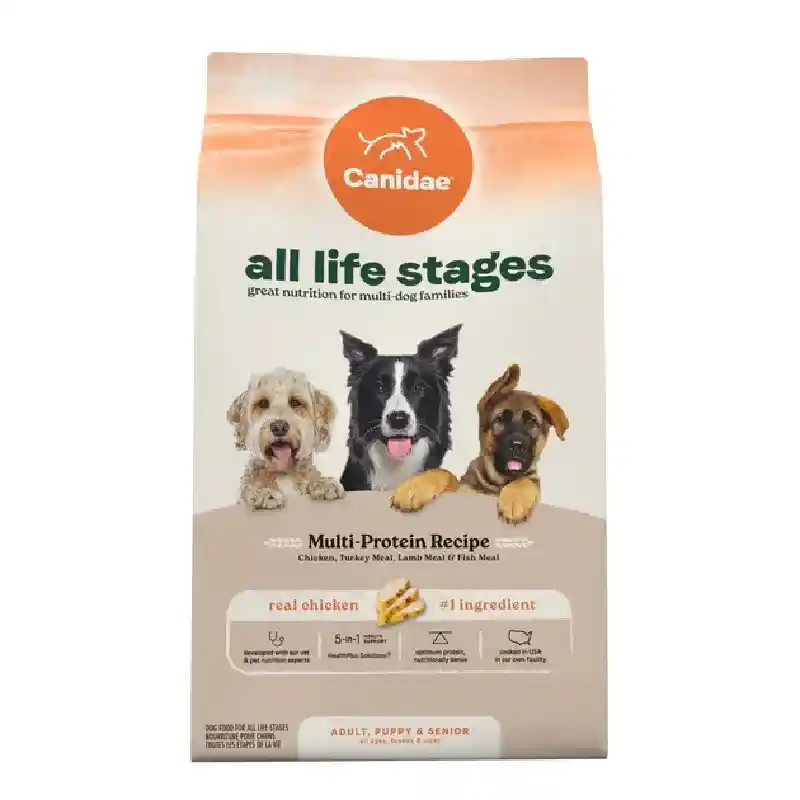 FOR ALL DOGS: Canidae All Life Stages dry dog food is developed with our vet & pet nutrition experts for dogs of all ages, breeds & sizes, making mealtimes easy. Complete and balanced nutrition for multi-dog families.