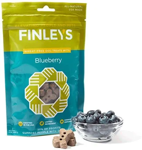 Loaded with antioxidants that are great for your dog's skin and coat while offering the heart healthy benefits of coconut oil. A favorite among the pickiest of Finley's fans!**Single Package Size:** 12oz.**Ingredients:** Oats, Barley, Blueberries, Coconut Flakes, Coconut Oil, Rosemary Extract**Calorie Content (calculated):** 3400 kcal ME/KG, 17kcal ME/treat**Guaranteed Analysis:** Protein: 9.5% min, Fat: 7% min, Fiber: 3% max, Moisture: 12% max