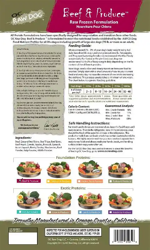 Oc Raw Dog Frozen Beef & Produce Sliders 4-lb
