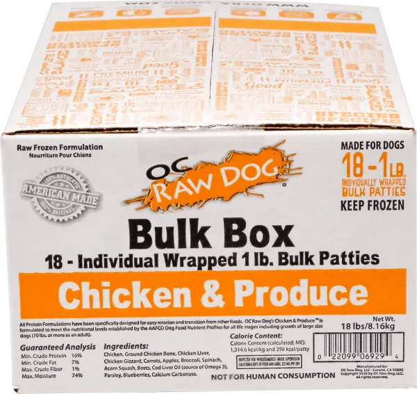 Oc Raw Dog Frozen Chicken & Produce Bulk 18-lbs