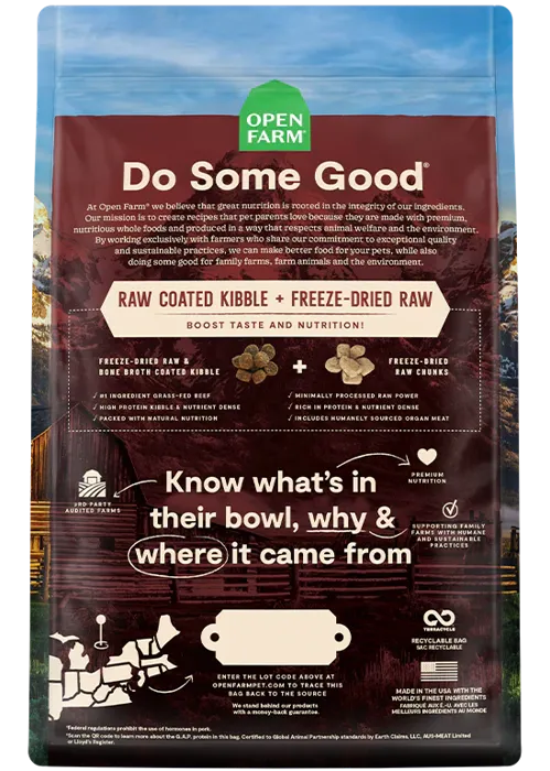 ReWild their diet with this multi-animal protein blend of grass-fed beef, pasture-raised lamb, and humanely-raised pork, covered in a beef bone broth and freeze dried raw coating. Bonus freeze dried raw chunks provide a protein-packed boost, while nutrient-dense ancient grains and superfoods like pumpkin ensure complete and balanced nutrition.