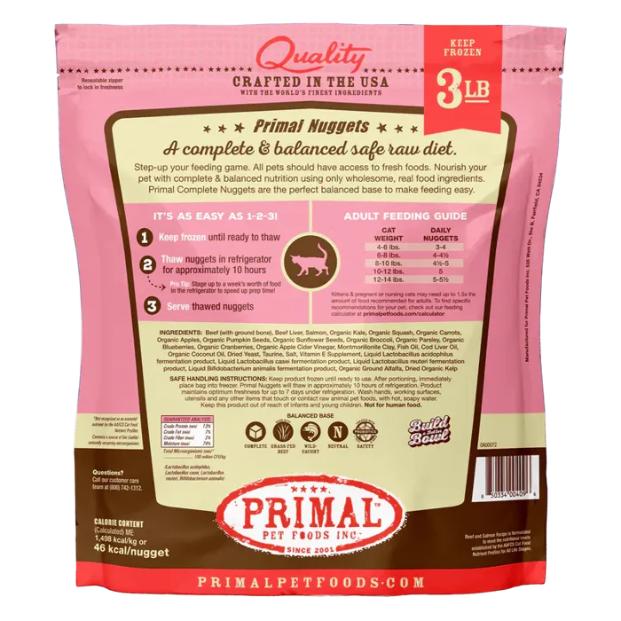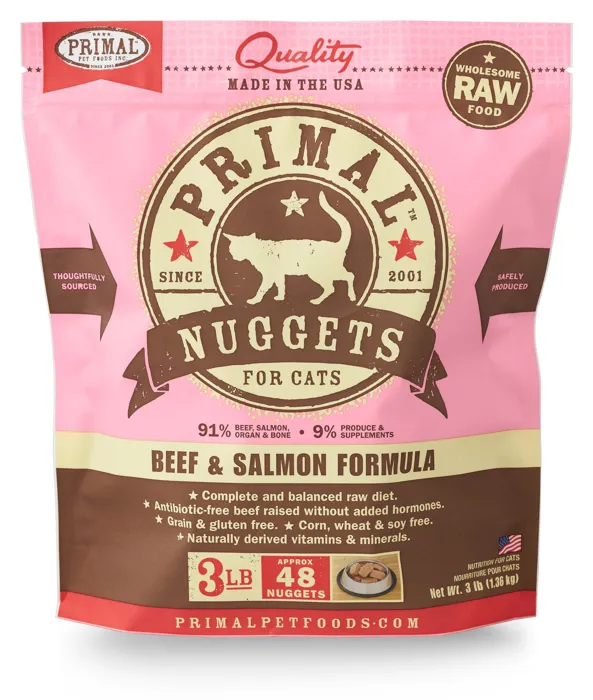 Primal Raw Frozen Feline Beef & Salmon Formula Nuggets Cat Food 3-lb