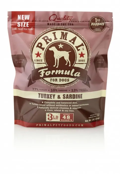 Primal Raw Frozen Canine Turkey & Sardine Formula Nuggets Dog Food 6-lb