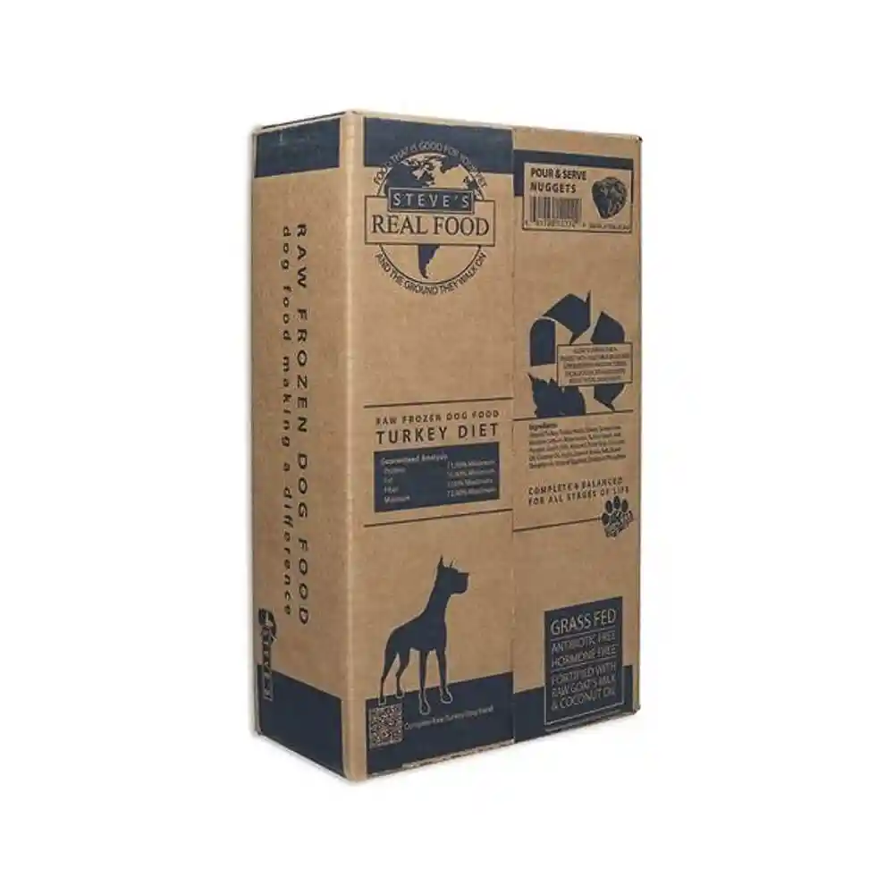 Steve’s Real Food turkey dog food recipe is an easily digestible protein. It is made with organic turkey and is complete and balanced for all stages of life for dogs and cats. The turkey recipe is a BARF formulation composed of 80% meat/organ/bone, 15% produce, and 5% value-added ingredients such as New Zealand Green-Lipped Mussel, coconut oil, and raw goat milk to provide your pet everything they need WITHOUT the use of synthetic vitamin packs