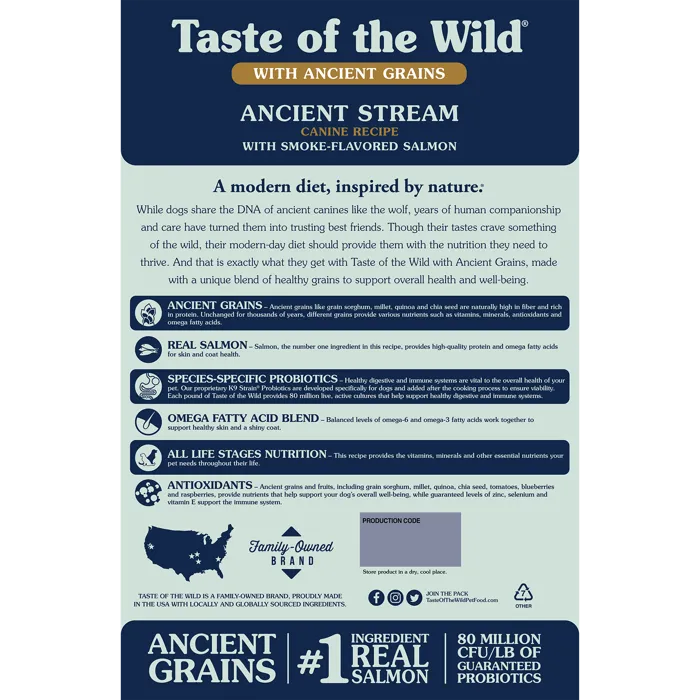 Taste Of the Wild Ancient Stream Smoked Salmon & Ancient Grain Recipe Dry Dog Food 5-lb