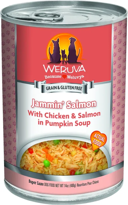 We're jammin and your dog only wants to jam with Weruva Jammin Salmon Canned Dog Food with you. This food is packed full of Omega-3s to have your dog shining with a healthy skin and coat. Weruva Jammin Salmon Canned Dog Food contains boneless, skinless, white breast chicken as well as wild caught salmon food to fill your doggo's hunger. Weruva never fails to let you know that the chicken is always cage-free as well as free from any antibiotics and added hormones. Weruva Jammin Salmon Canned Dog Food is also grain free for any pups with a grain allergy.