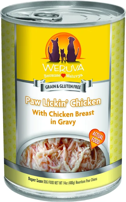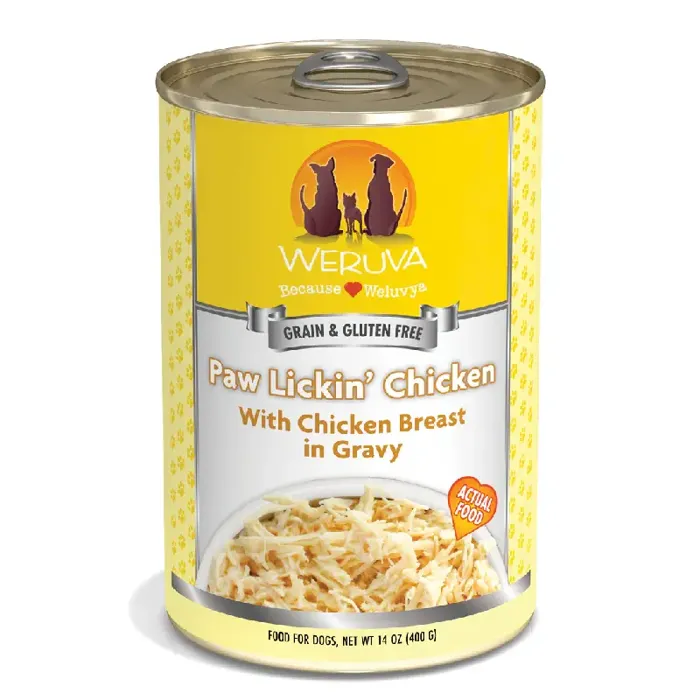 Simple, delicious, and paw lickin' good. No vegetables, grains, added hormones, and added antibiotics, your doggo will be lickin it's paws once it gets a taste of the Weruva Paw Lickin Chicken Canned Dog Food. This wholesome food is full of whole, boneless, skinless, and cage-free chicken breast for a happy and healthy pup. This simple meal is an easily identifiable food as the only protein provided is the delicious shredded chicken.