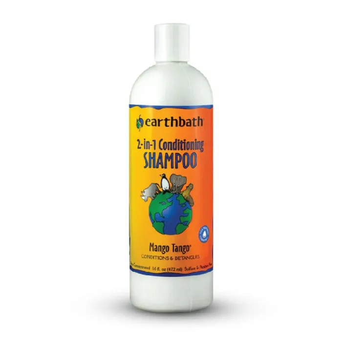 Earthbath responded to your requests for a high quality, all natural shampoo and conditioner in one by creating Mango Tango, a heavenly scented, biodegradable, pure and natural shampoo and conditioner that's sure to leave your furry friend looking...and smelling...better than ever before. The delicious scent of fresh tropical mangoes combined with an exceptionally mild shampoo adds brilliance and shine while the extra gentle conditioner softens and detangles, leaving your pet's coat wonderfully clean, soft & plush. Earthbath Mango Tango Shampoo and Conditioner will not wash off topical flea applications. Safe for all animals over 6 weeks. Soap free.