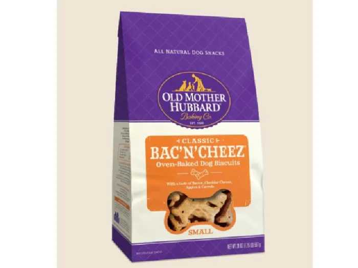 Your dog will love Old Mother Hubbard's Bac'N'Cheez basted dog biscuits. They are oven-baked to perfection with real Cheddar Cheese and Natural Canadian Bacon flavor.