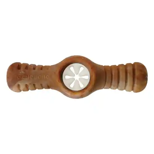 h3. Flavored Pawplexer Dog Chew Toy, Made in USAAt Benebone, we started with the premise that dogs experience scent and flavor in a way we can’t even grasp. So, we ditched the neon colors and loud squeaks. Inspired by the dog’s powerful sense of smell, we developed a long-lasting durable chew that’s jam-packed with real flavor. And with the Pawplexer, we added a fun interactive twist – add your favorite bully stick or treat! Once your dog takes a bite of our USA-made chews, he’ll be hooked.• **Dog-Friendly Design** – We created a Benebone with a unique center for a bully stick, jerky or other treat. Not only is it a durable chew bursting with flavor and scent, it’s sure to provide plenty of interactive challenge.• **Real Flavor** – We use only 100% real food ingredients for irresistible flavor and scent. We fuse 100% USA-sourced REAL BACON, all the way through the chew. Dogs can tell the difference.• **Made in the USA** – We are fully committed to Made in USA, including packaging, tooling, and all material and ingredient sourcing. We proudly manufacture our products in New York.• **Dog Welfare** – We are fully committed to the welfare of dogs through product donations and community involvement.• **Safety First** – Benebones are not edible. Supervise closely and discard/replace when appropriate.**Instructions for Use and Safety Information:**• At Benebone, we’re in the business of making dogs happy, and there’s nothing more important than the safety of your dog. It’s durable nylon, so let’s get the obvious out of the way. Is it hard? Yes. Is it edible? No. Will it last forever? Definitely not. For more details, check out our packaging and our website.• We use real flavors, including peanuts. Ensure nobody in the household is allergic to any of our tantalizing ingredients.While recognizing that weight limit is a rough guide, our small products are for dogs under 30 lbs, our medium products are for dogs under 60 lbs, and our large products are for dogs under 90 lbs. Always choose the largest size your dog can handle.