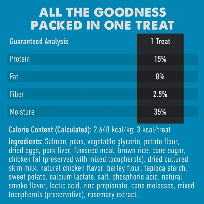 This wheat-free training treat is bursting with omega-3 fatty acids and has a soft texture your dog will crave.