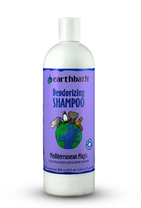 The scent of a lush Mediterranean garden can deodorize a pet who needs a little help to stay smelling squeaky clean. Earthbath searched the world for an essence that would get to the root of unpleasant scents and discovered the essence of rosemary. Renowned for its fresh, long-lasting scent and skin soothing properties, this fine, natural essence creates a mild deodorizing shampoo that cleanses thoroughly and safely. It will leave your best friend's coat soft, plush, and smelling naturally fresh for days. Will not wash off topical flea applications. Safe for all animals over 6 weeks. Soap free.