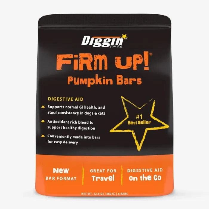 Our #1 best selling product just got better! FIRM UP! Pumpkin Bars support your best friend's digestive health. Perfect for your adventure pet when camping, boating, competing, enjoying a day at the beach, or at home. This tasty treat is effective, affordable, and convenient.
