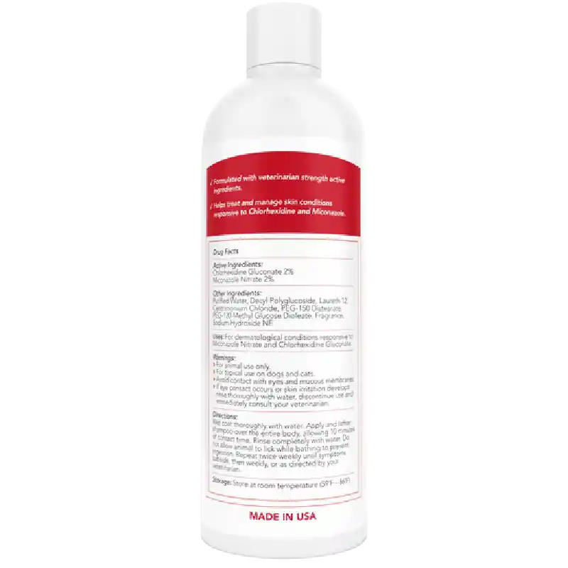 Nootie’s soap free Antimicrobial Shampoo is for dermatological conditions associated with bacterial and fungal skin infections responsive to Miconazole Nitrate 2% and Chlorhexidine Gluconate 2%. It is delicately formulated with our Soft Lily Passion fragrance which leaves your pet’s coat shiny, soft and smelling great!– True Veterinarian Grade Formulation– Great for Hot Spots or Bug Bites– Long lasting, non irritating fragrance– Soap & Paraben free– No sulfates or harsh chemicals– Safe to use along with topical flea & tick products