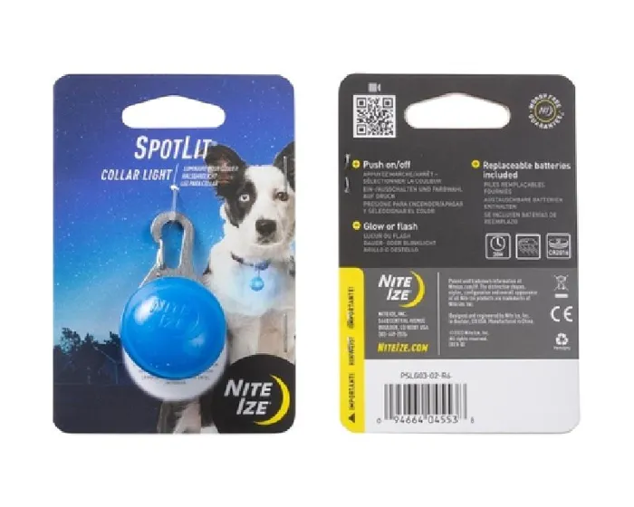 Nite Ize Spotlit Led Collar Light Blue Carabiner Pet Locator Light Glows Flashes