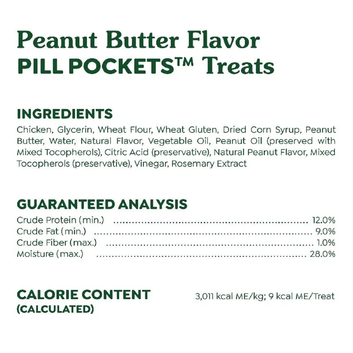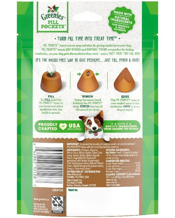 Giving your pup medication no longer has to be a hassle! Greenies Pill Pockets Canine Peanut Butter Dog Treats are the perfect, low calorie way to disguise pills and eliminate the stress of giving your furry companion medicine. Greenies Pill Pockets Canine Peanut Butter Dog Treats mask both the smell and taste of the pills put inside!