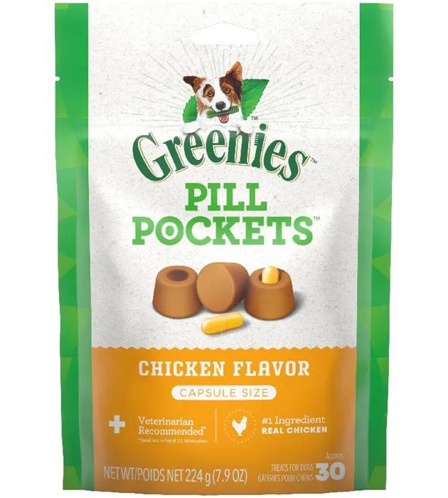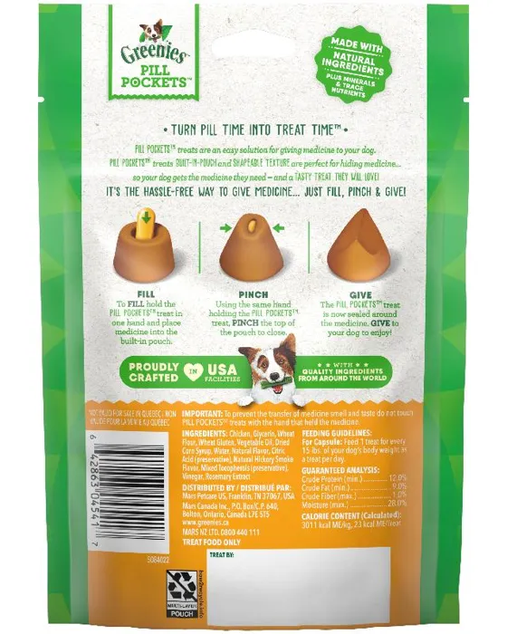Giving your pup medication no longer has to be a hassle! Greenies Pill Pockets Canine Chicken Flavor Dog Treats are the perfect, low calorie way to disguise pills and eliminate the stress of giving your furry companion medicine. Greenies Pill Pockets Canine Chicken Flavor Dog Treats mask both the smell and taste of the pills put inside!