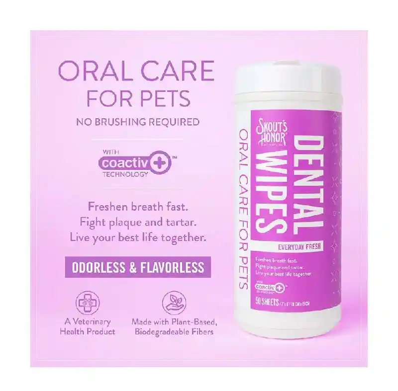 Skout's Honor Dental Wipes Oral Care For Pets, 50-count