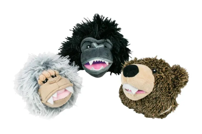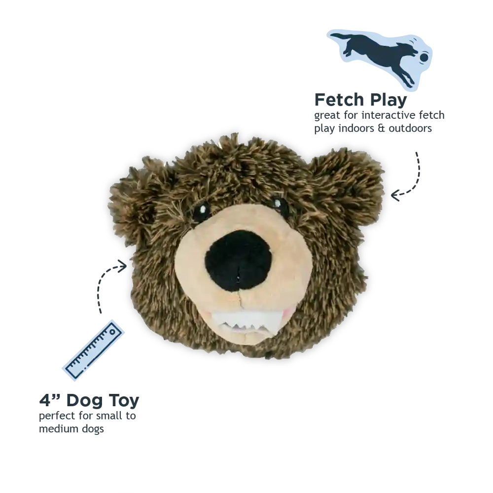 Tall Tails Dog Toy 2 In 1 Grizzly Bear Head 4"