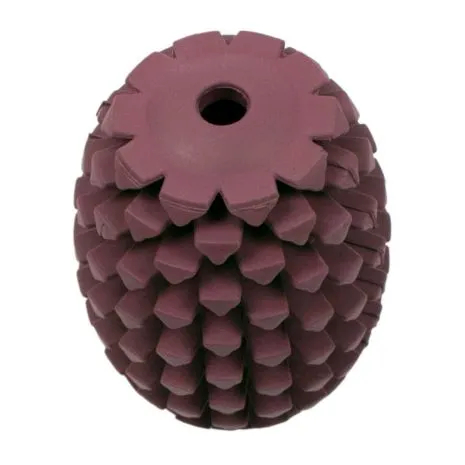 Consisting of a flexible and rugged natural rubber, this toys natural shape offers rambunctious bounce to provide great stimulation and exercise for games of fetch in the backyard or park. Featuring grooves to massage gums to help maintain dental hygiene, you can also add spread on treats for a yummy, stimulating time. This 4 inch flexible natural rubber toy is ideal for dogs over 25 lbs who love to fetch and be mentally stimulated.
