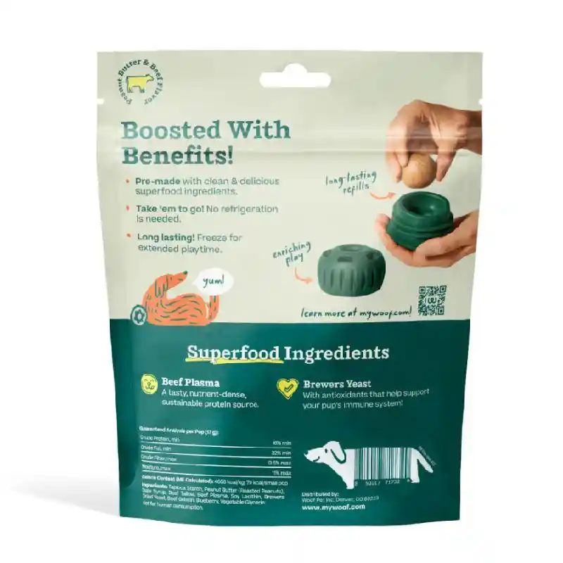Made in USA: At Woof, we create thoughtfully designed products so you can tell your dog “I love you” in a way they’ll understand. Man's best friend deserves safe, clean, and long-lasting fun, and you deserve the quiet that comes with it. Pupsicle Refill Pops are a wonderful way to keep dogs busy with the long-lasting Pupsicle toy.