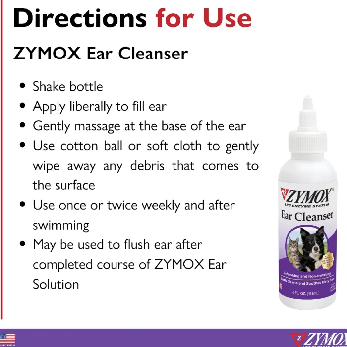 Directions: Flush ear canal and massage base of ear. Clean excess with cotton ball. For maintenance use 1-2 times weekly.