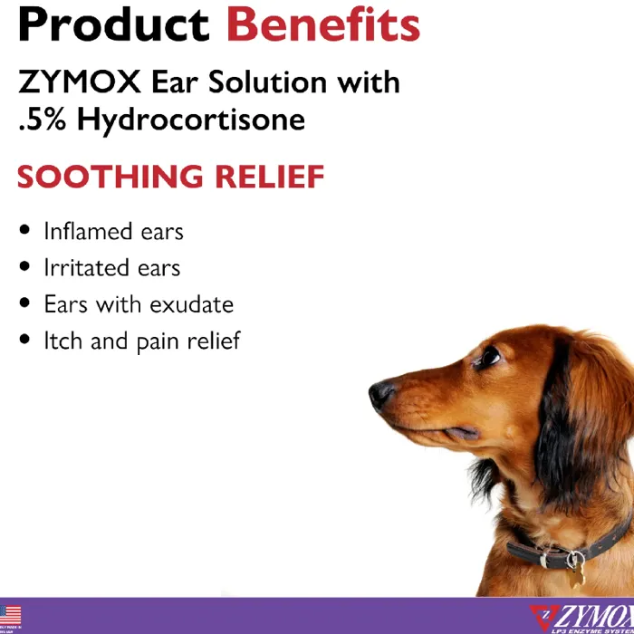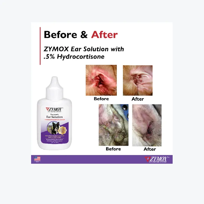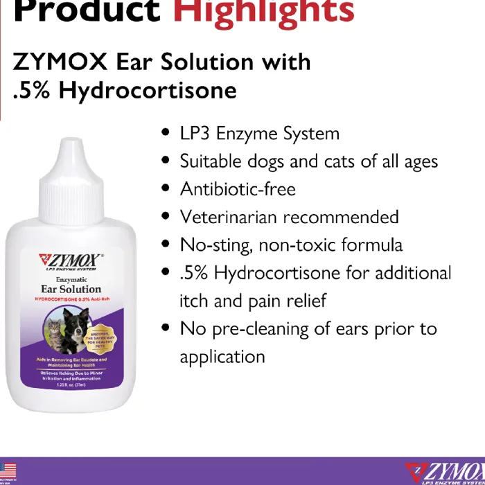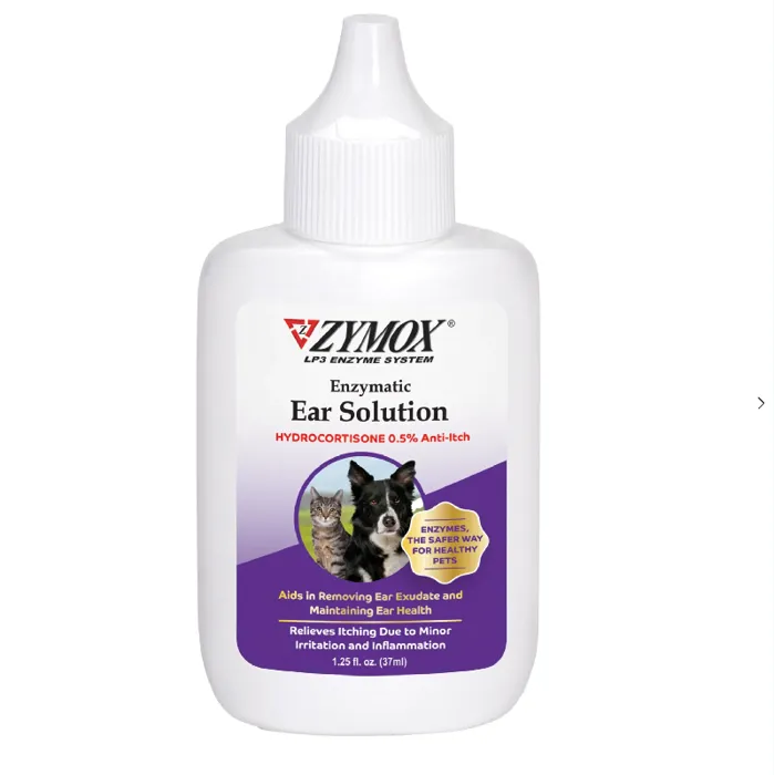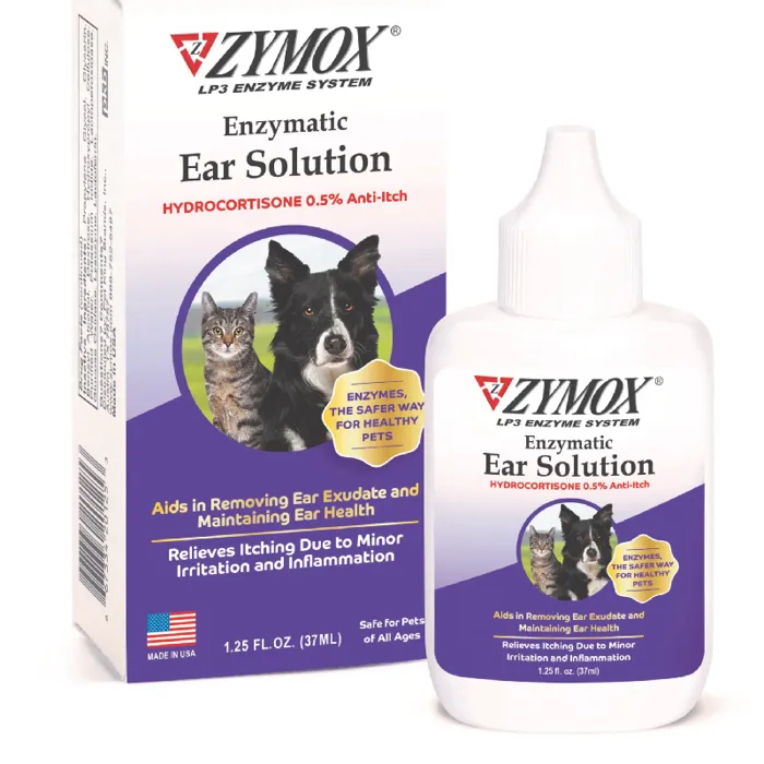 Zymox Ear Care Solution With .5% Hydrocortisone For Dogs & Cats 1.25-oz Bottle