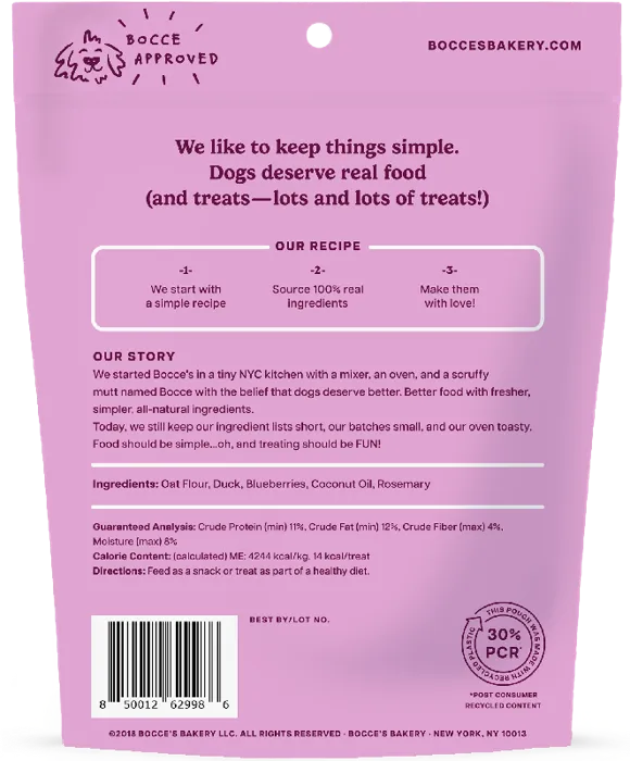 Bocce's Bakery Quack Quack Quack Duck & Blueberry Crunchy Biscuits 5-oz